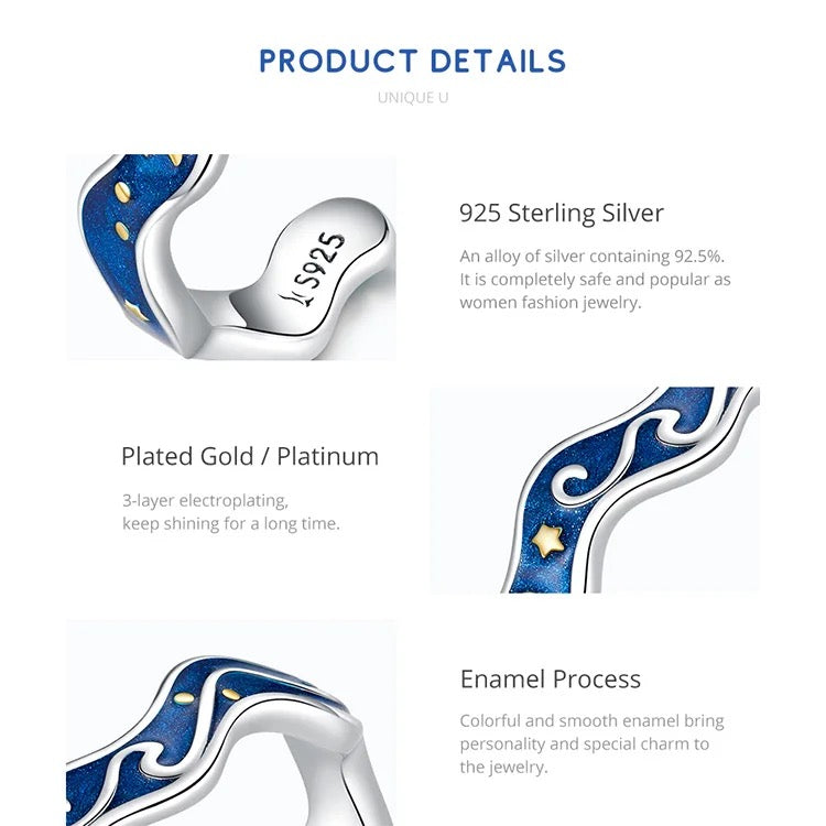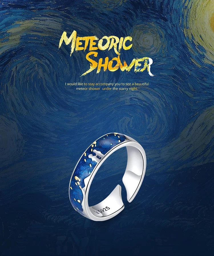 The 925 Sterling Silver Starry Sky & Meteoric Shower of Van Gogh is a piece of art that have to be placed in the Louvre , it is free size and have a beautiful enamel plated surface
